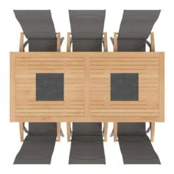 OUTLIV. Davos Gartenmöbelset 7-teilig Klappsessel Mit Linz Tisch 220×100 Cm Anthrazit/Grau