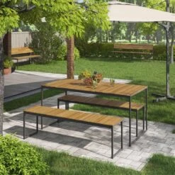 OUTLIV. Floris Gartenmöbel-Set 3-tlg. Mit Tisch 210x78cm Schwarz