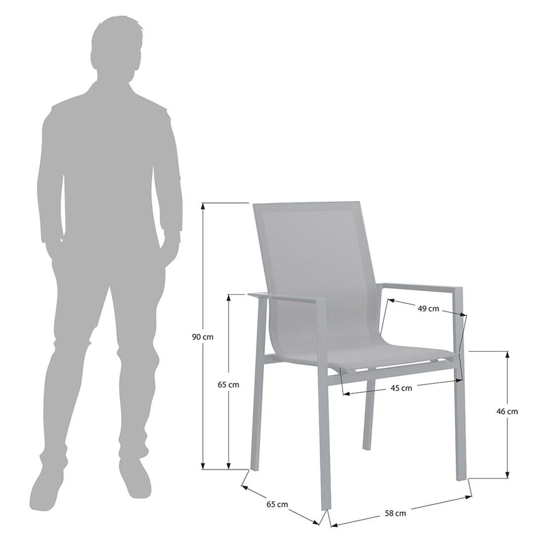 Die robusten Metallgestelle aus Aluminium sind pflegeleicht und garantieren gleichzeitig eine hohe Stabilität. Darüber hinaus gewährleistet dieses leichte Material, dass Sie die Möbel bequem transportieren können. Ein weiteres Highlight der Sitzmöbel ist die Bespannung der Sitzflächen mit Textilene in der Farbe Schwarz-Grau. Dieses Material zeichnet sich durch eine hohe Robustheit gegenüber Hitze und Frost aus und ist leicht zu reinigen.
