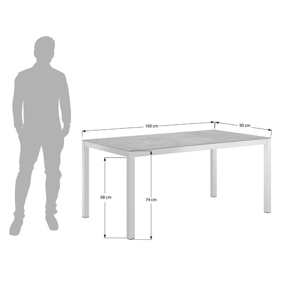 An diesem Gartentisch können bis zu 6 Personen sitzen. Genügend Platz also für die ganze Familie oder ein gemeinsames Dinner mit Freunden. 160 cm x 90 cm – mit diesen Abmessungen zählt der Gartentisch zu den Möbeln mittlerer Größe.