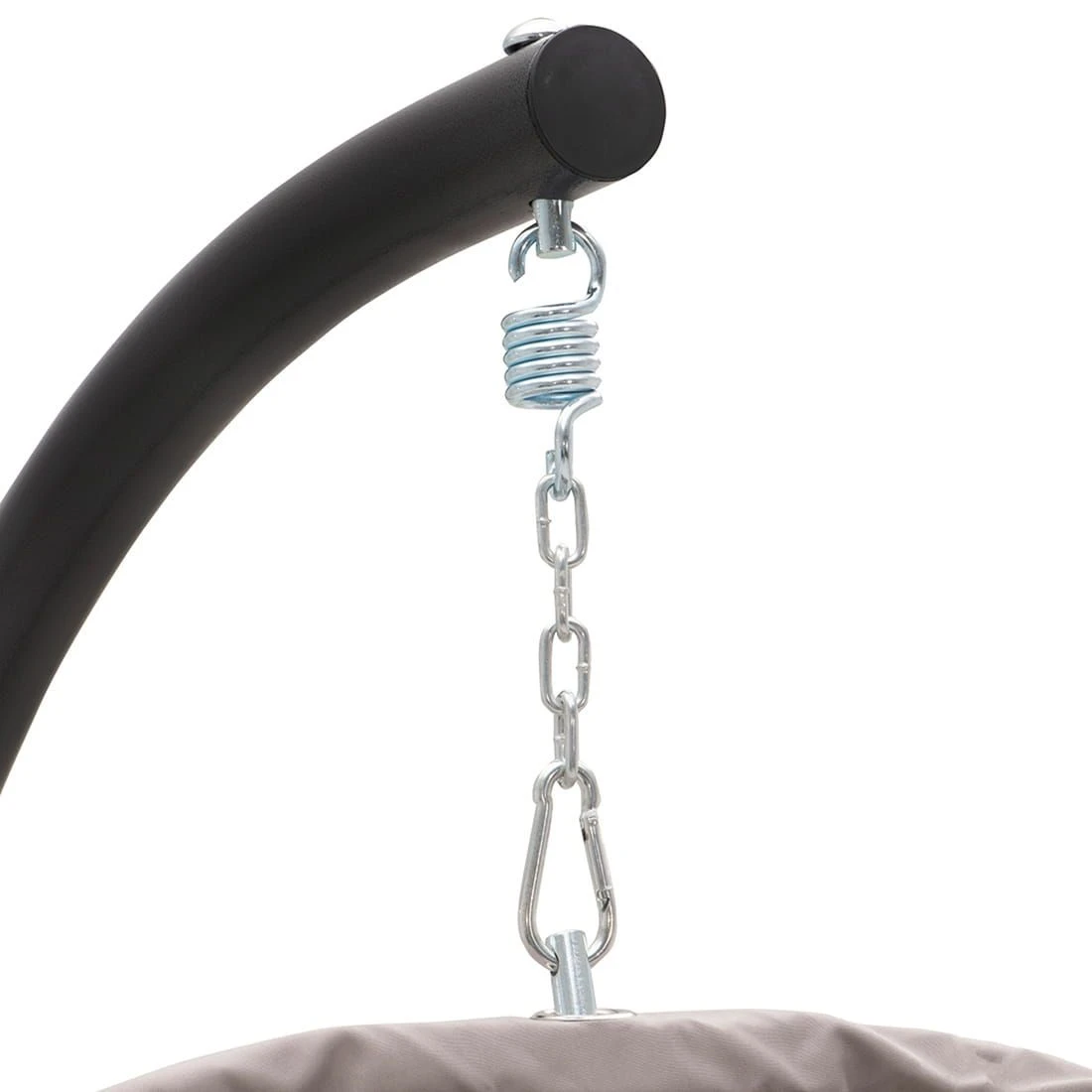 Das Gestell wurde aus robustem Stahl in der Farbe Anthrazit gefertigt. Die Sitzfläche des Hängesessels wurde mit Polyester bespannt. Der Hängesessel ist bis zu einem Gewicht von 120 kg belastbar.
