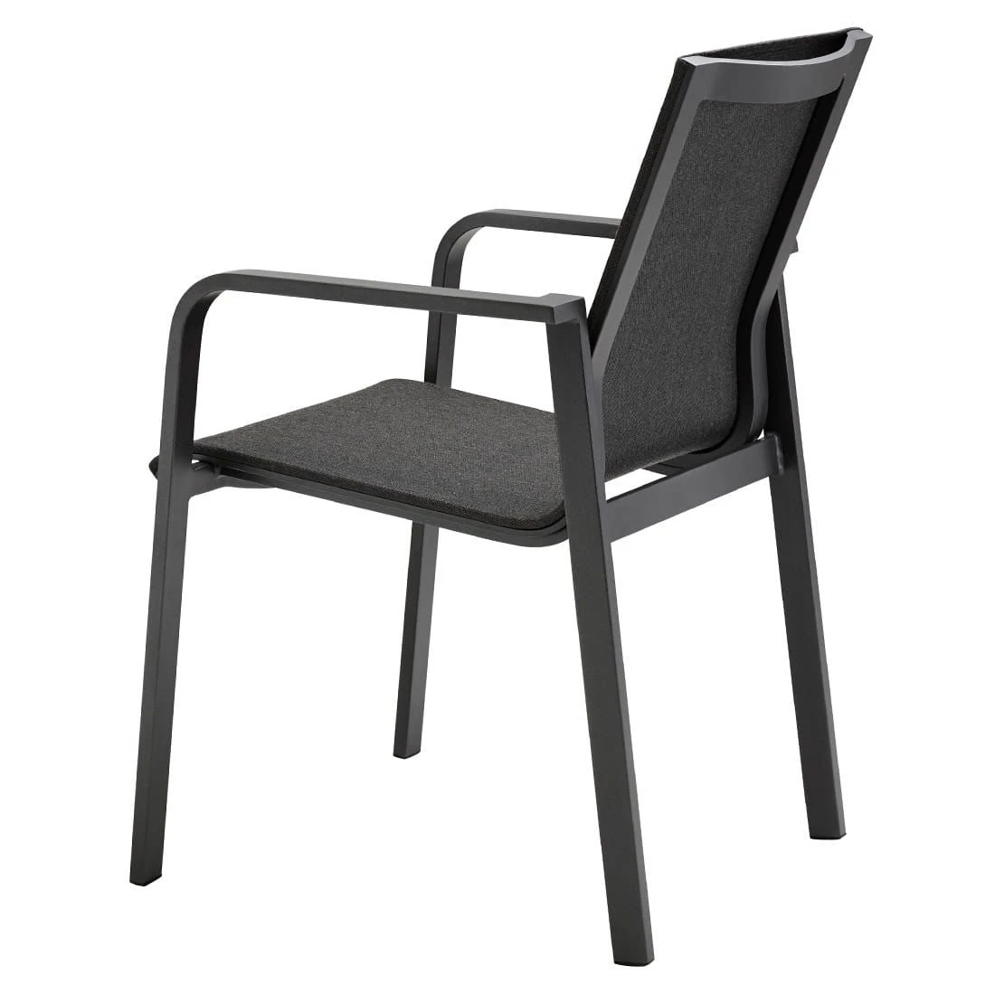Ein weiterer Pluspunkt des Stapelsessels ist die Bespannung mit Textilene in der Farbe Coal. Dieser Bezugsstoff überzeugt durch eine hohe Robustheit gegenüber Hitze und Frost aus und ist leicht zu reinigen. Ihr Vorteil: Wenn Sie mehrere Exemplare des Modells Julia besitzen, können Sie diese äußerst kompakt und platzsparend aufbewahren, indem Sie diese stapeln. Auch eine stärkere Belastung macht dem robusten Sitzmöbel nichts aus, denn es ist bis 125 kg belastbar. Angenehm ist auch die Sitzhöhe, welche bei 45 cm liegt.