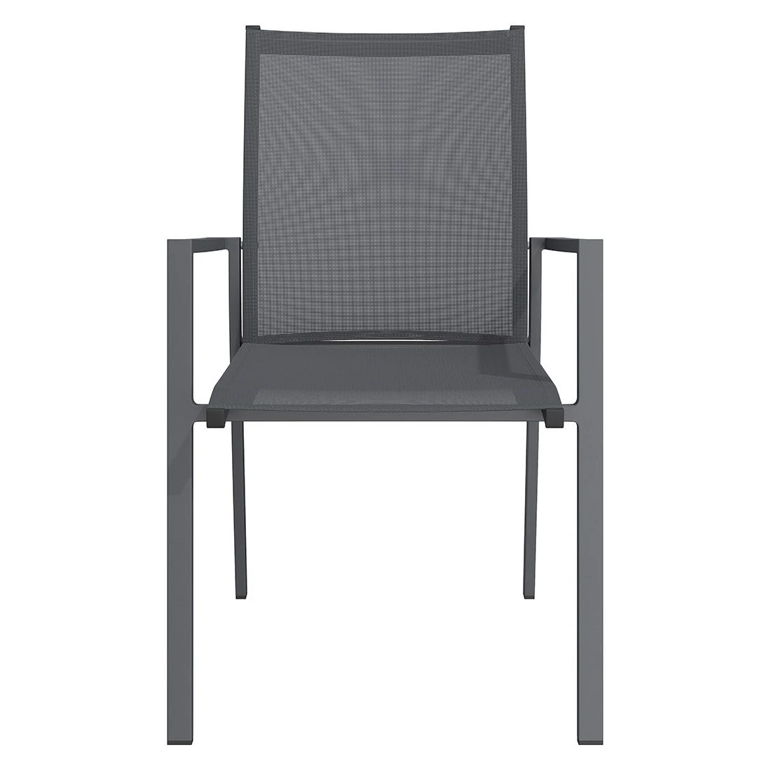 Das Gestell wird aus Aluminium gefertigt. Das geringe Eigengewicht des Materials macht den Stapelsessel zu einem robusten, aber dennoch leicht zu transportierenden Sitzmöbel auf Ihrer Terrasse. Für die Bespannung der Sitzfläche verlässt sich der Hersteller auf hochwertiges Textilene. Es zeichnet sich durch eine hohe Robustheit gegenüber Hitze und Frost aus und ist leicht zu reinigen. Für ein perfekt stimmiges Gesamtbild sorgt die einheitliche Farbgebung in stilvollem Anthrazit.