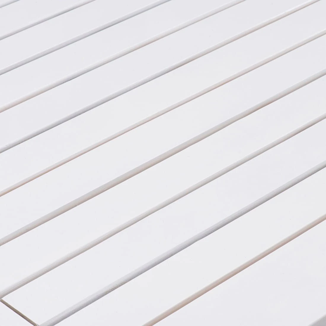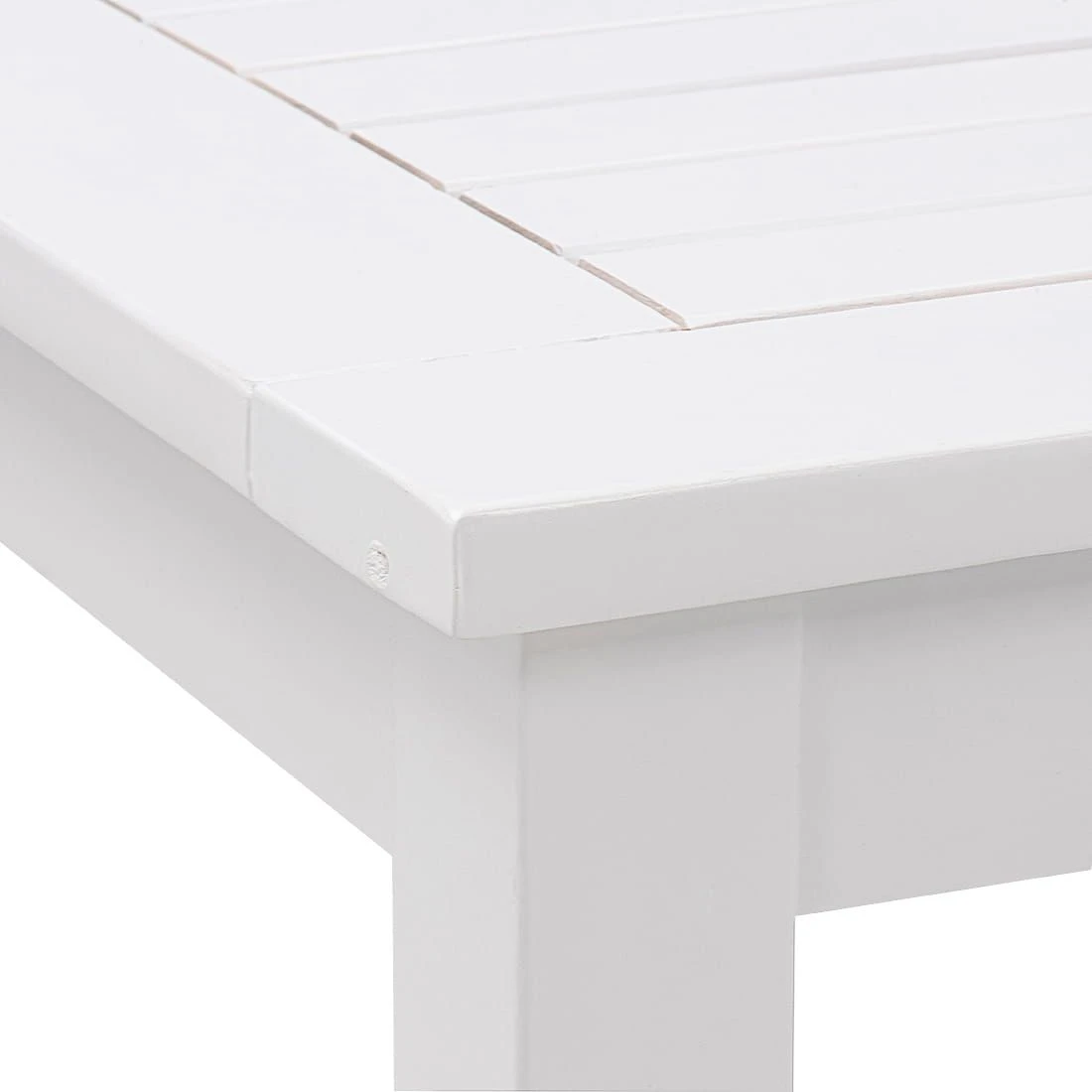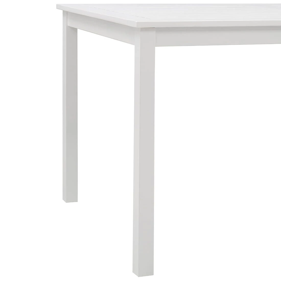 Als klassische Design-Komponente fungiert das geradlinige Vierfußgestell. Der Gartentisch Landhaus ist Ton in Ton gehalten: Sowohl das Gestell als auch die Tischplatte sind aus Akazienholz gefertigt. Farblich ist die Tischplatte in einem schönen Weiß gehalten. Der Gartentisch ist klassisch rechteckig gestaltet.