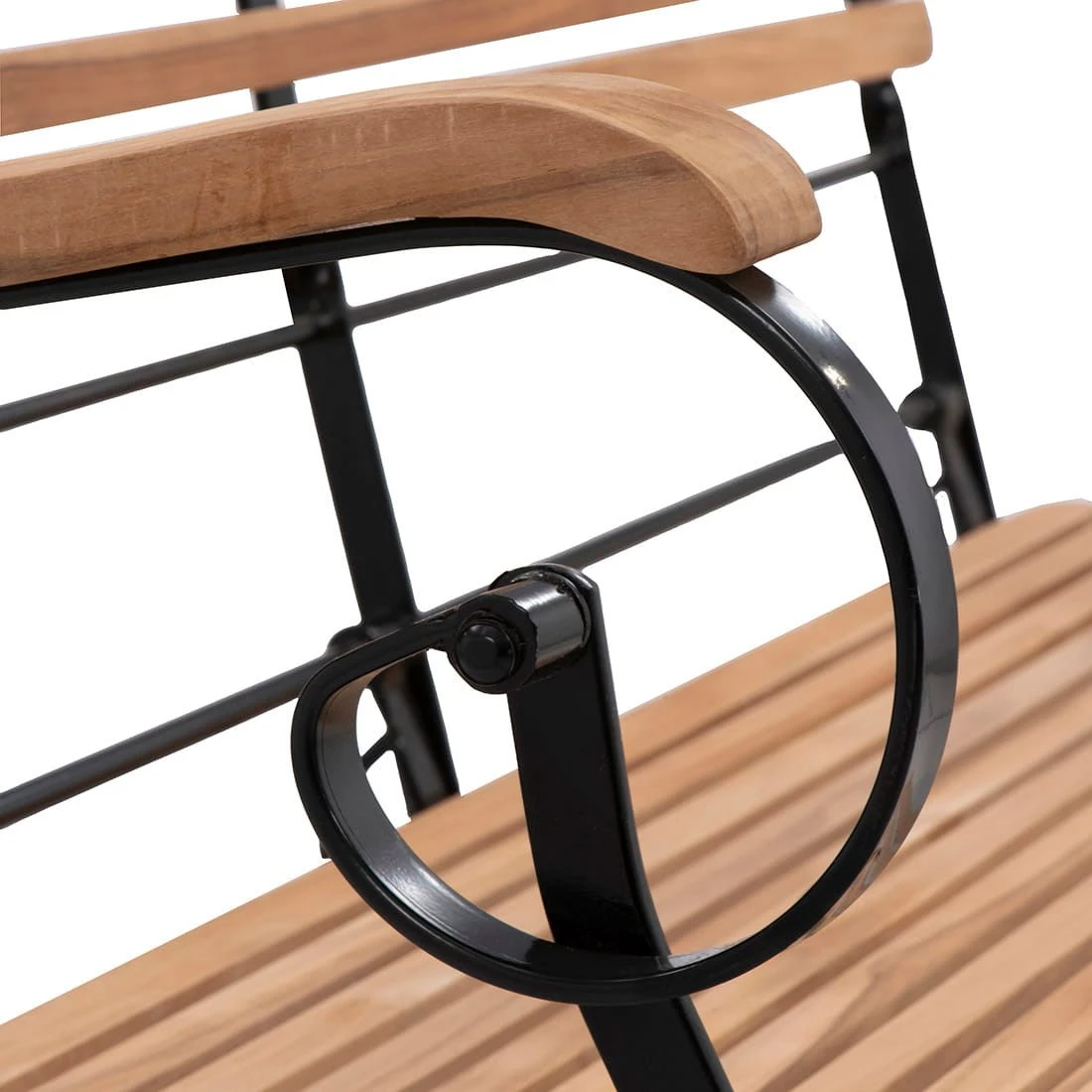 Das Gestell ist aus robustem Stahl gefertigt. Für eine attraktive Optik ist das Gestell im Farbton Dunkelgrau gehalten. Als robustes und gleichzeitig äußerst natürliches Material für die Sitzfläche hat sich der Hersteller für Teakholz entschieden. Die Sitzfläche hat eine schöne Farbgebung in Teak.