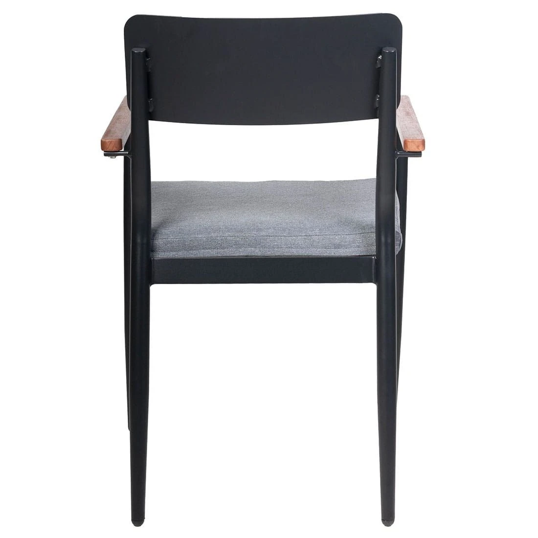 Die Stühle und der rechteckige 4-Fuß-Tisch sind aus Aluminium gefertigt und sorgen somit für einen modernen Look und eine hohe Stabilität. Ein weiterer Pluspunkt ist die Farbgebung in Anthrazit, die das moderne Design perfekt unterstreicht. Übrigens: Aluminium ist vergleichsweise leicht und zeichnet sich durch eine hohe Robustheit gegenüber Hitze und Frost aus. Darüber hinaus ist es leicht zu reinigen. Ein weiteres Highlight sind die Armlehnen der Stühle, die mit einer eleganten Leiste aus Eukalyptusholz versehen sind.