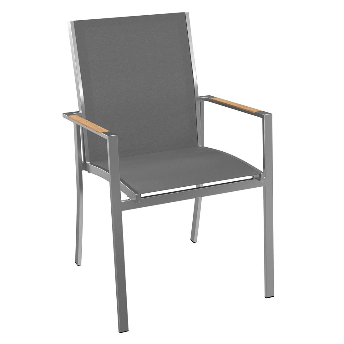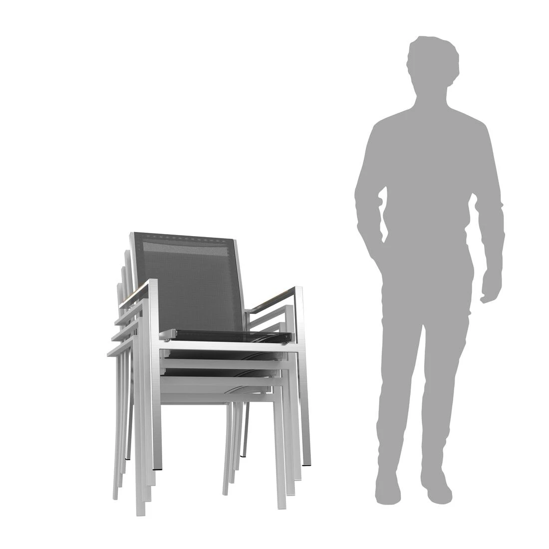 Die Gestelle sind aus Edelstahl gefertigt und sorgen somit für einen modernen Look und eine hohe Stabilität. Ein der Sitzmöbel ist die Bespannung der Sitzflächen mit Textilene. Dieses Material zeichnet sich durch eine hohe Robustheit gegenüber Hitze und Frost aus und ist leicht zu reinigen.