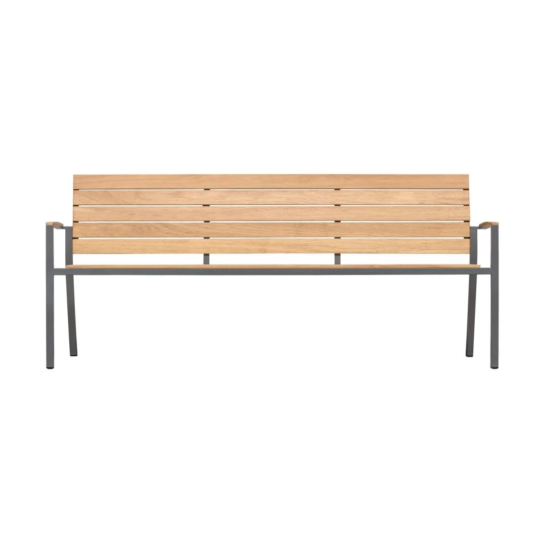 Das Gestell der Gartenbank besteht aus hochwertigem und rostfreiem Edelstahl. Neben seiner ansprechenden Optik bietet dieses Material auch eine hohe Stabilität. Für eine attraktive Optik ist das Gestell im Farbton Dunkelgrau gehalten. Als robustes und gleichzeitig äußerst natürliches Material für die Sitzfläche hat sich der Hersteller für Teak entschieden. Die Sitzfläche ist in ansprechendem Teak gehalten.