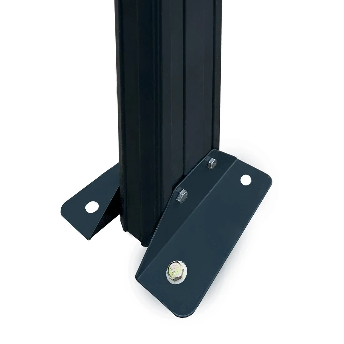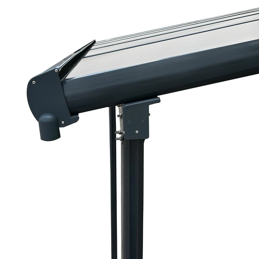 Das Gestell des Schrägdachs ist aus wetterfestem Aluminium gefertigt und rostfrei. Damit Sie nicht im Dunkeln stehen, sind die Dachelemente aus semi-transparentem Polycarbonat gefertigt. Die Lichtdurchlässigkeit beträgt 70%, sodass Sie an sonnigen Tagen auch von einer leichten Beschattung profitieren.