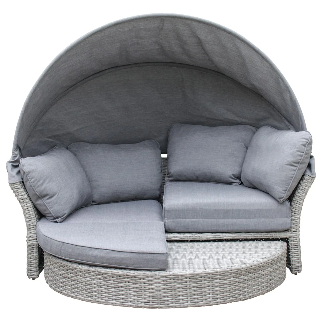Dank des leichten Gestell-Materials Aluminium zählt die Sonneninsel Seattle zu den leichteren Modellen und lässt sich somit im Garten ohne Aufwand bewegen. Das Gestell, das mit hochwertigem Polyrattan umflochten ist, bringt ein exklusives Ambiente auf Ihre Terrasse. Dieses Material zeichnet sich durch eine hohe Wetterbeständigkeit aus. Die Sitzfläche ist mit einem outdoortauglichen und komfortablen Stoff in der Farbe Grau-Meliert bezogen. Auch wenn dieser Wind und Wetter trotzt, empfehlen wir, die abnehmbaren Kissen bei länger andauernder Feuchtigkeit in der Wohnung bzw. in Ihrem Haus zu lagern.
