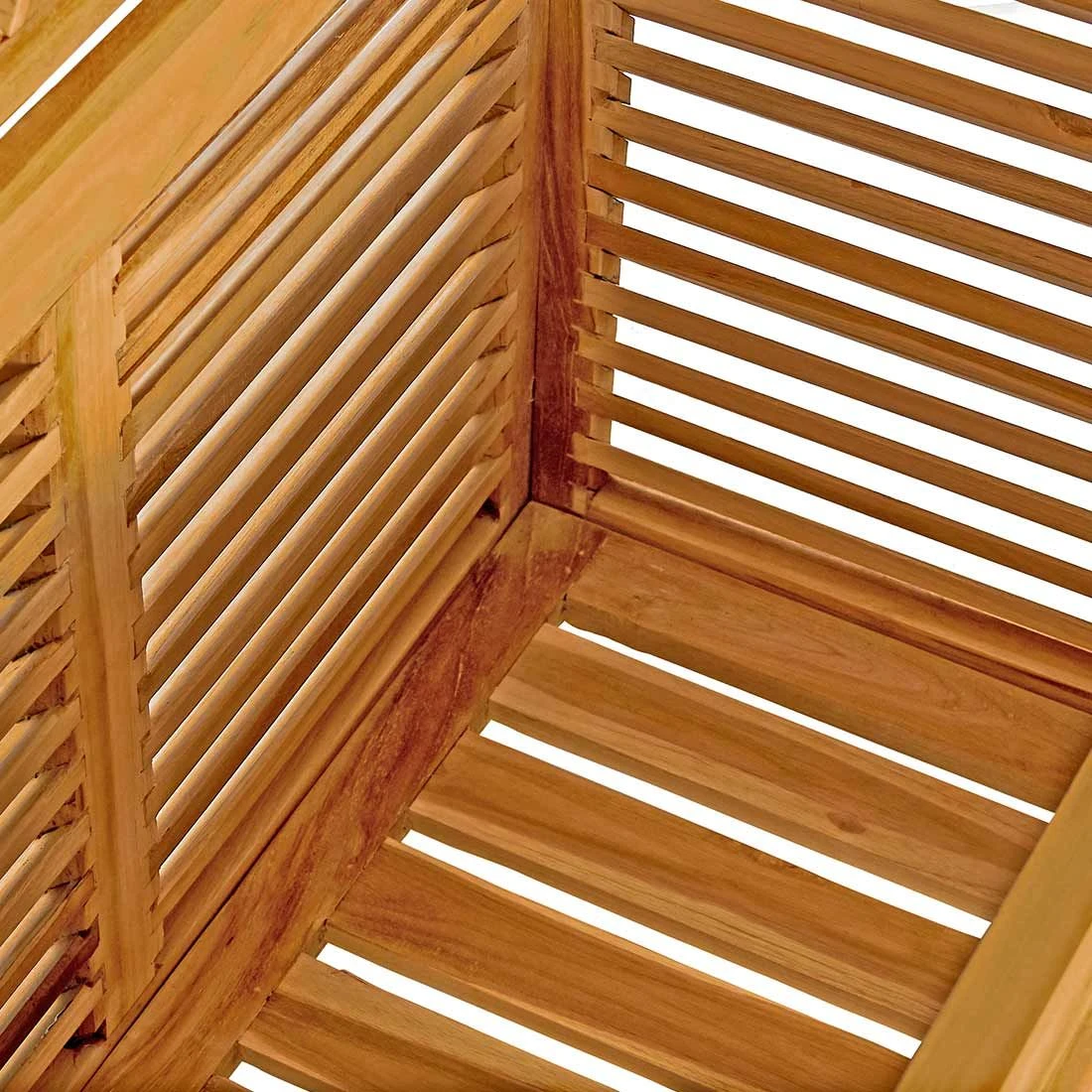 Der robuste Korpus der Gartenbox besteht aus natürlichem Teakholz. Der Korpus ist farblich in geschmackvollem Natur gestaltet. Gerade wenn es darum geht, die Gartenbox optimal zu integrieren, ist diese Farbe ideal dafür. Als Plus an Komfort bietet Ihnen die Gartenbox eine Soft-Close-Funktion. Möchten Sie die Gartenbox schließen, nachdem Sie Ihre benötigten Utensilien entnommen haben, kümmert sich die Soft-Close-Dämpfung darum, dass dies geräuscharm und sicher erfolgt.